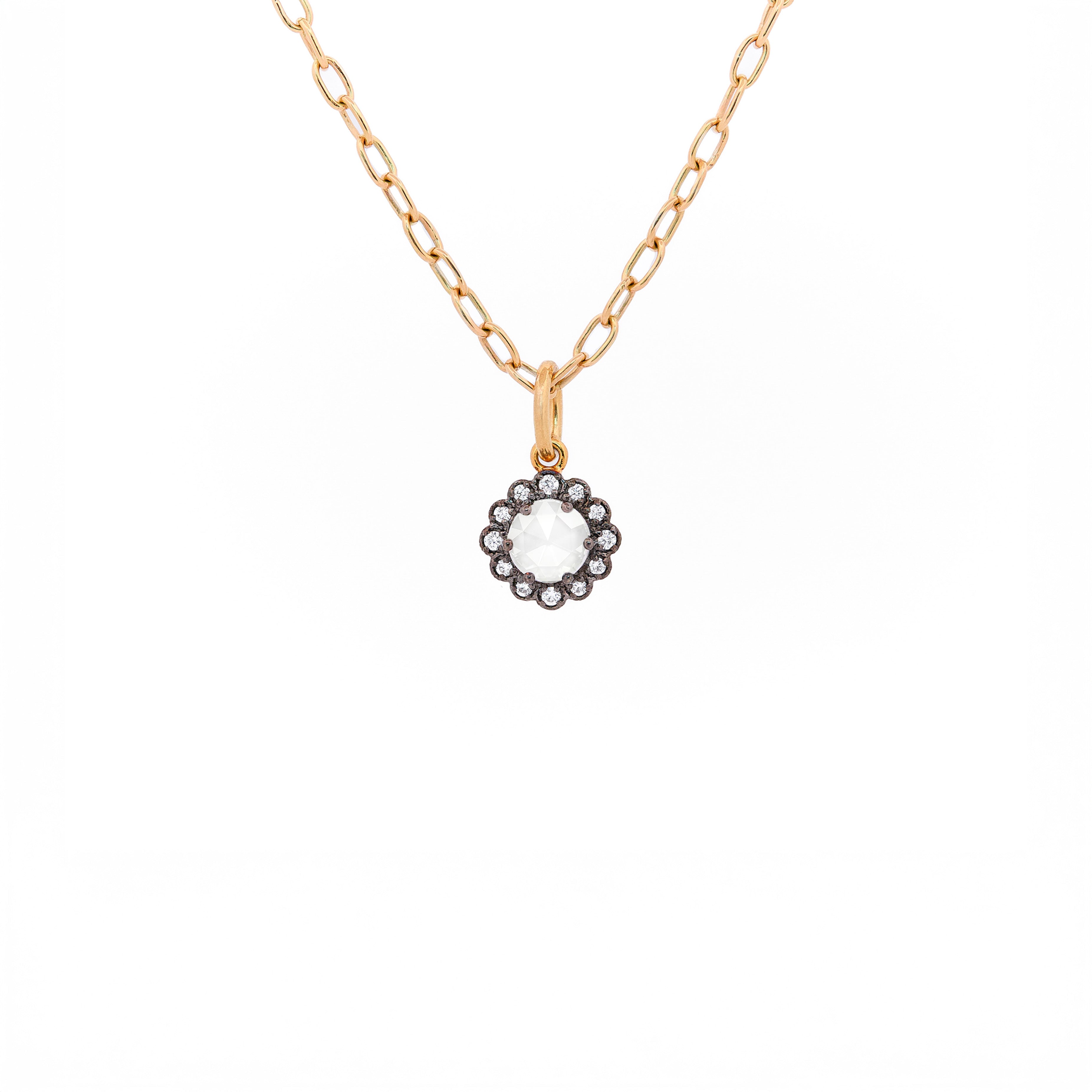 I love wearing this tiny charm next to the other pendants I own. It works very well in the combination with white gold. And I didn’t expect it to shine so bright. It’s so lovely.