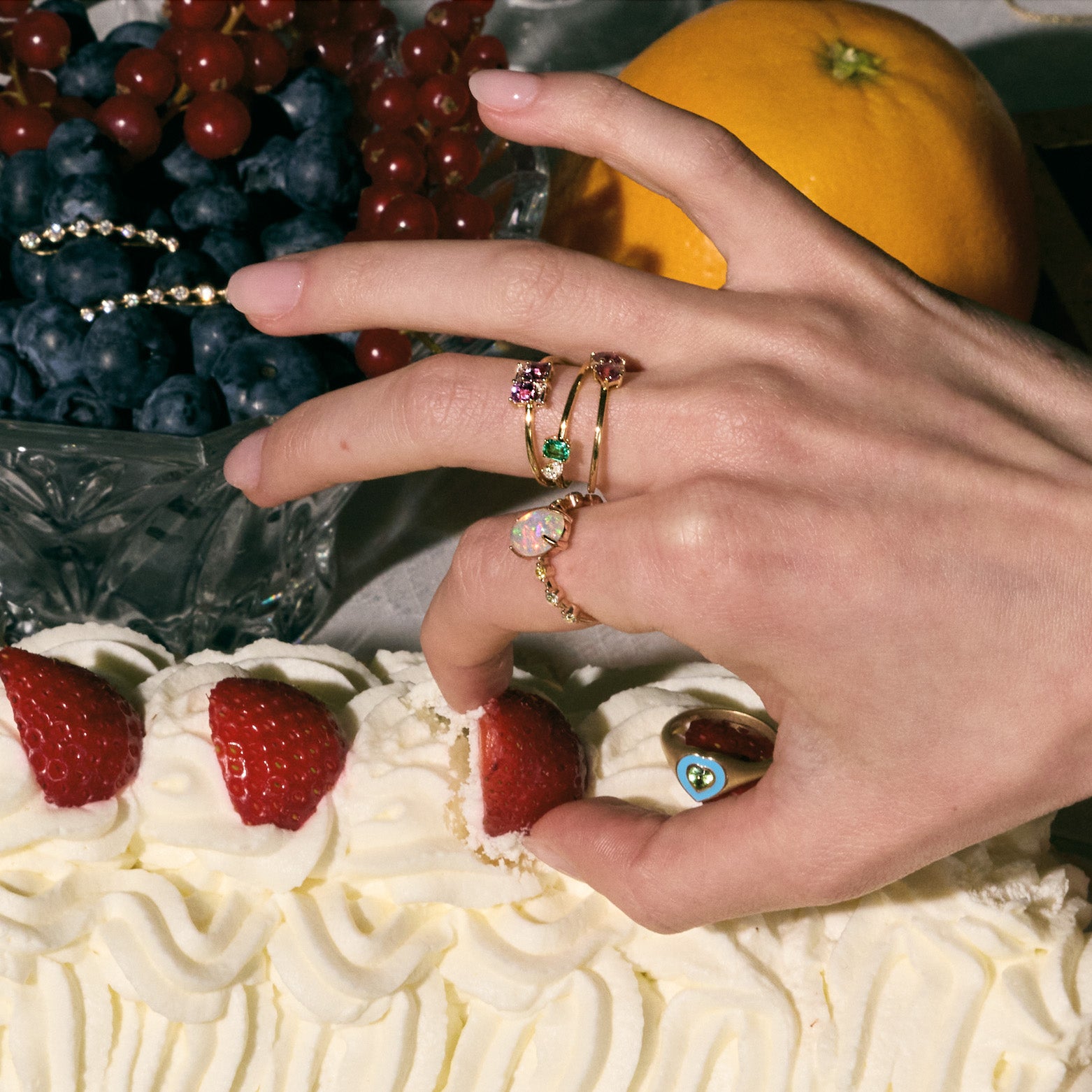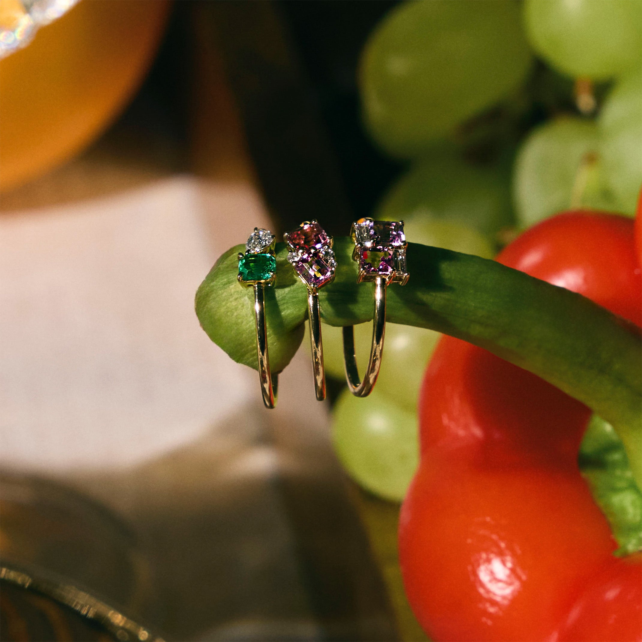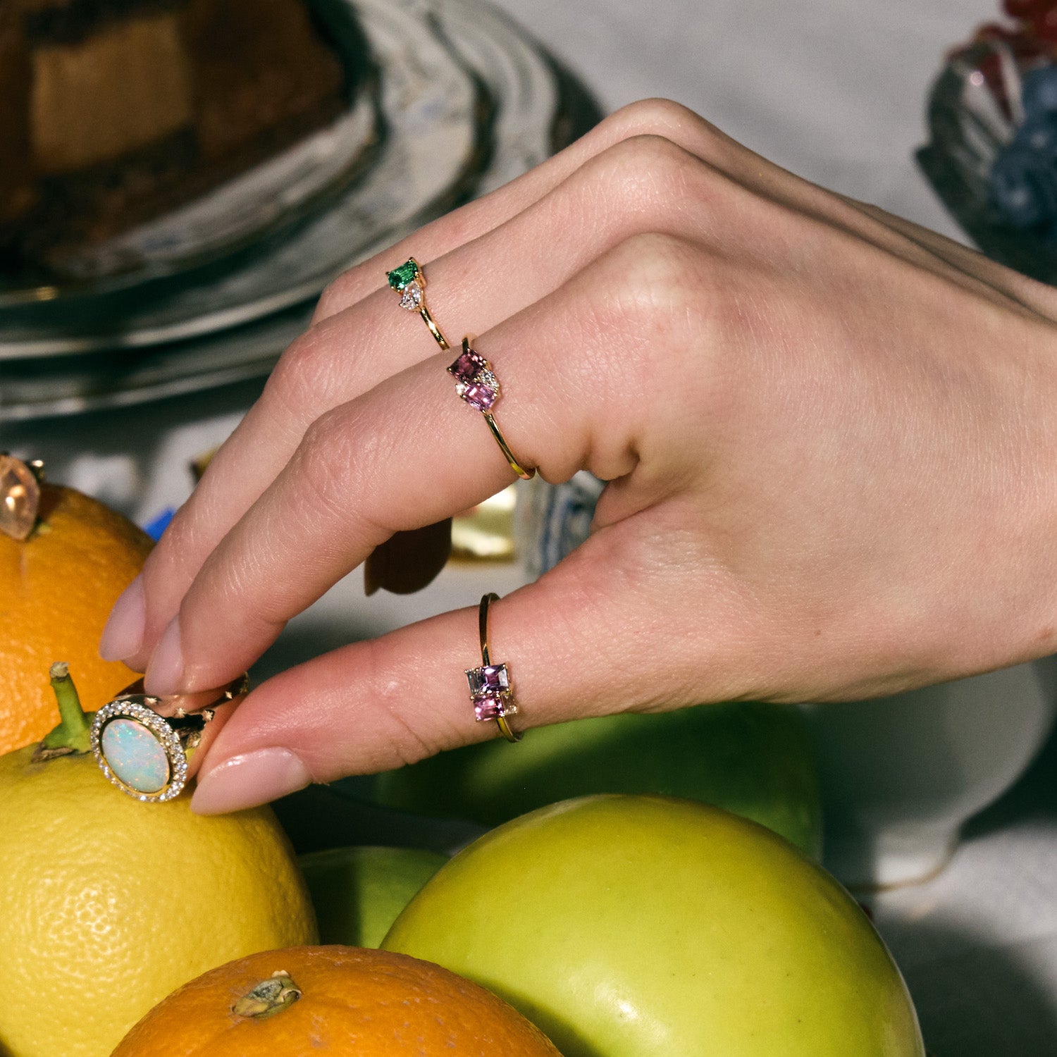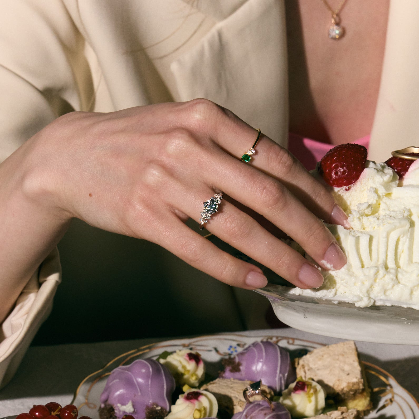 Inspired by the idea of "You and Me," this delightful ring adds a playful and stylish vibe to any outfit, serving as a lovely token of affection. It showcases a sparkling teardrop diamond alongside a vibrant emerald, both set in luxurious 18k gold, blending subtle elegance with eye-catching sparkle. Wear it alone to make a bold statement or stack it with other rings to express your personal style. Dreaming of a different gemstone mix or your birthstones? We’re here to create a custom design just for you. Embrace fun and sophistication with this charming ring.