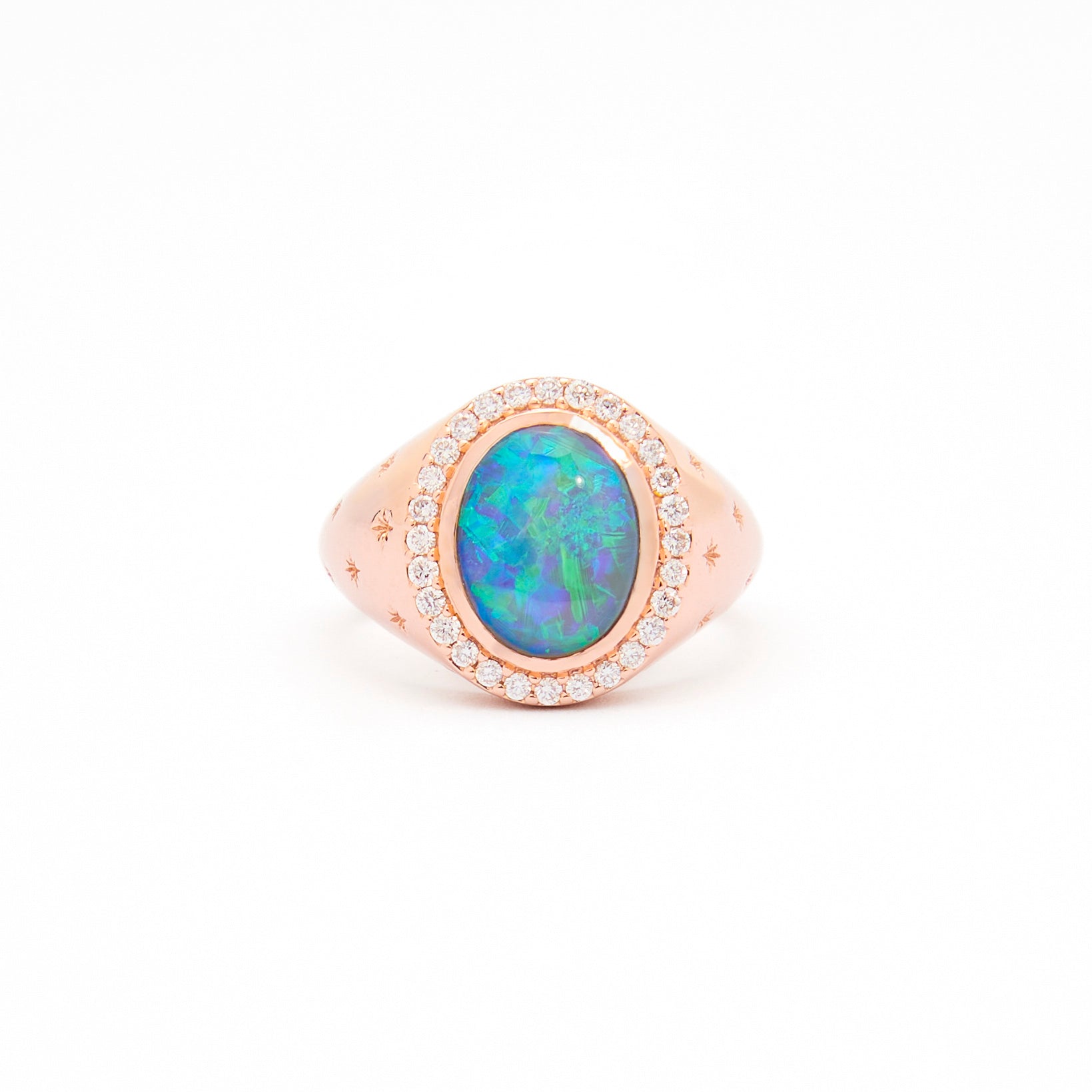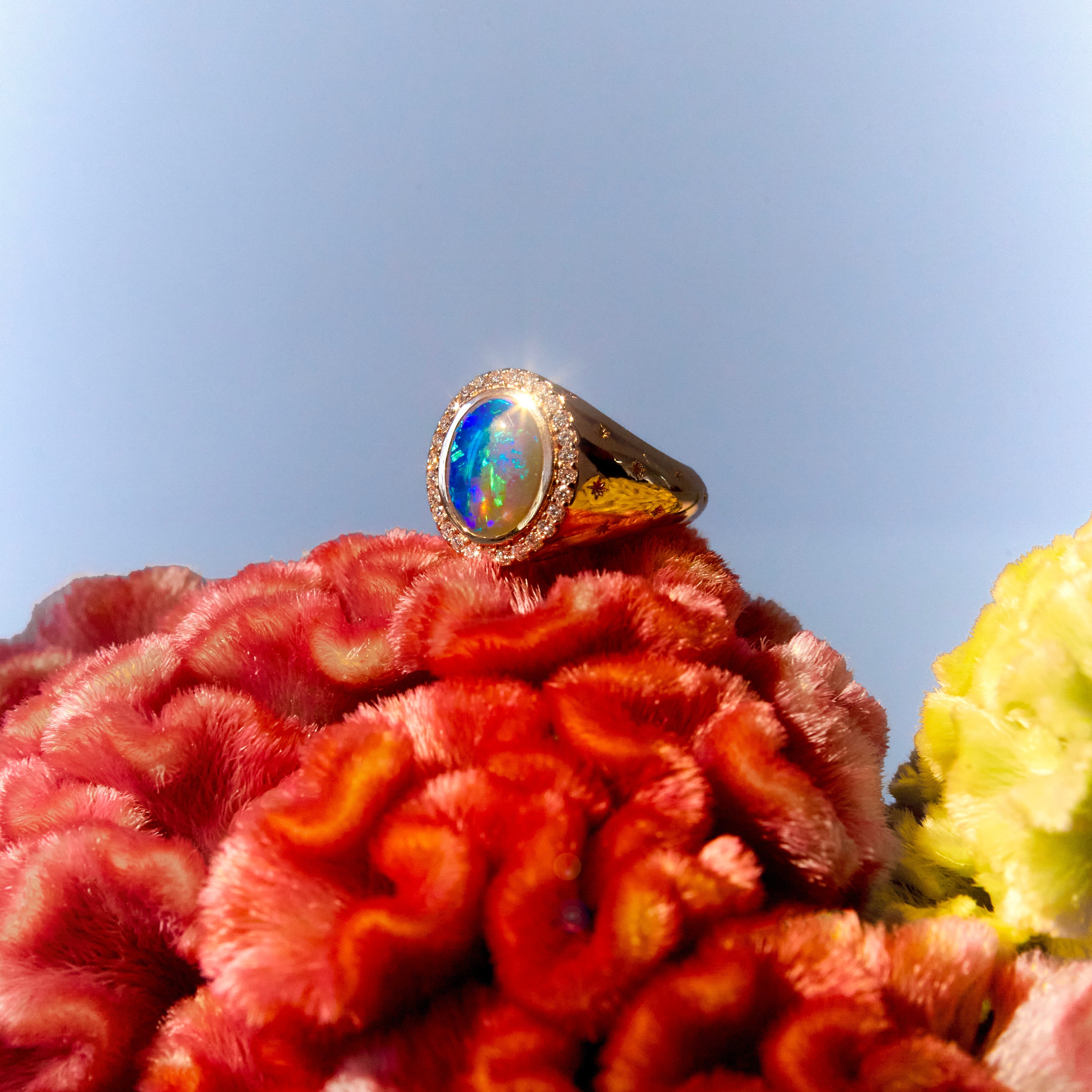 The Duke - Australian Opal and Diamonds Signet Ring - Made to Order