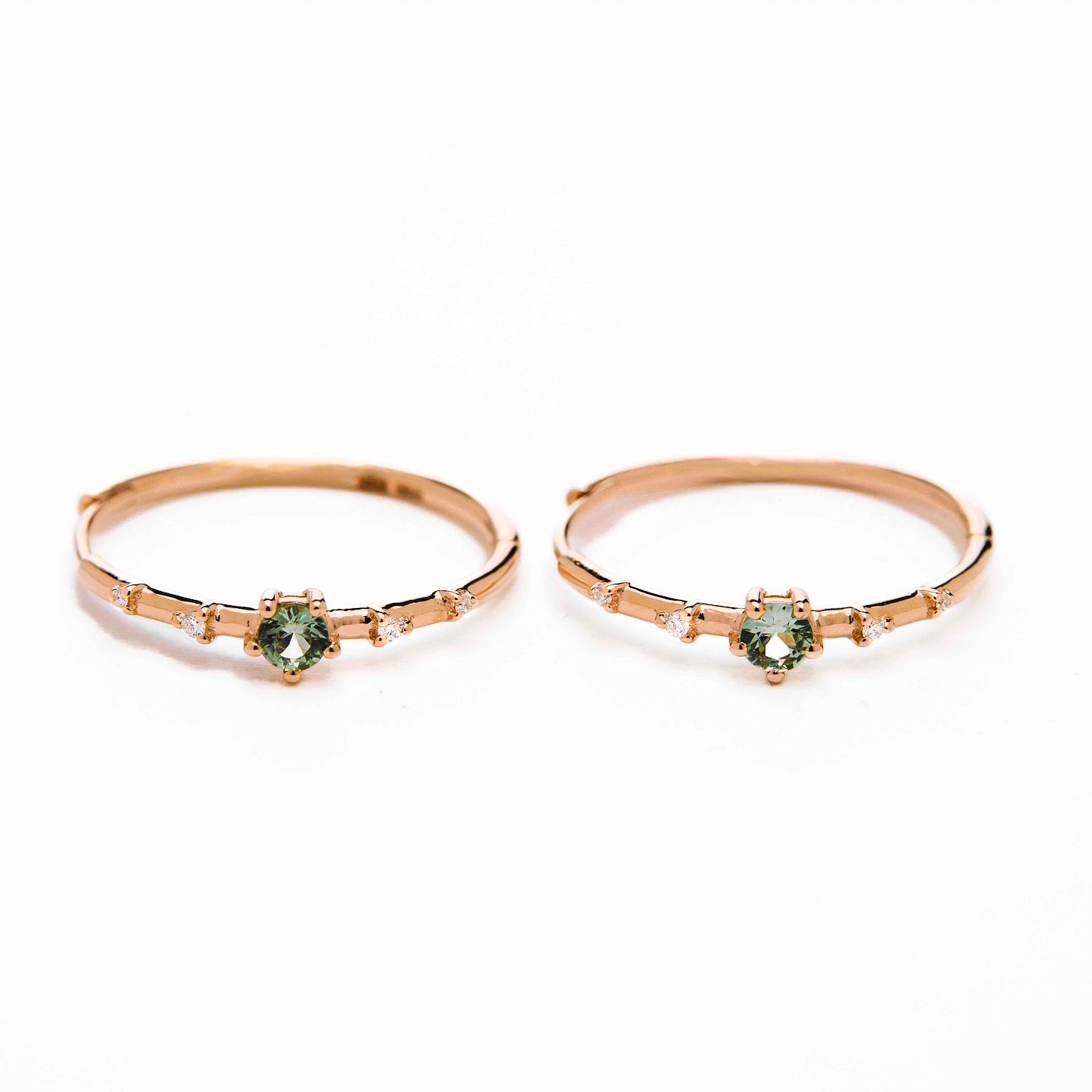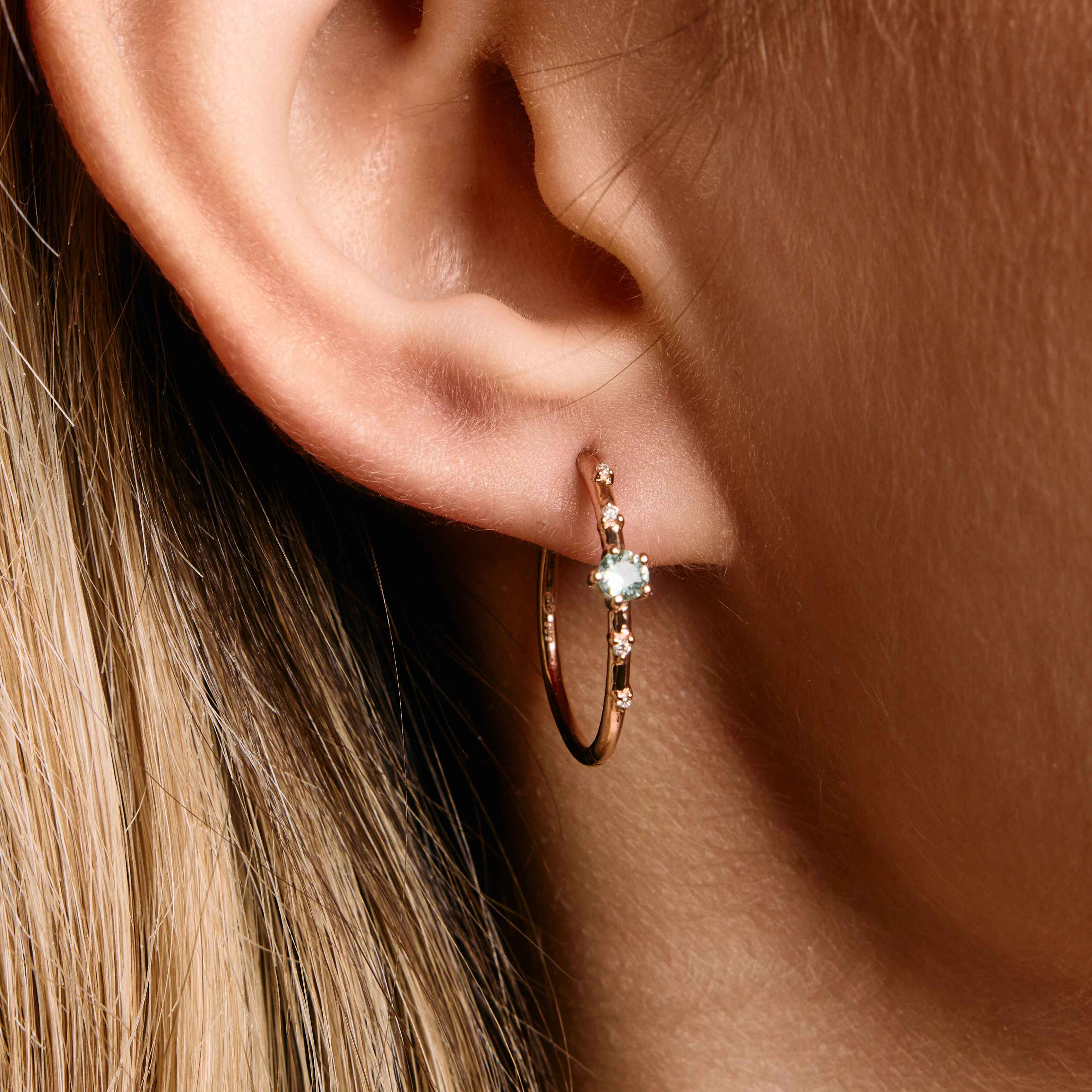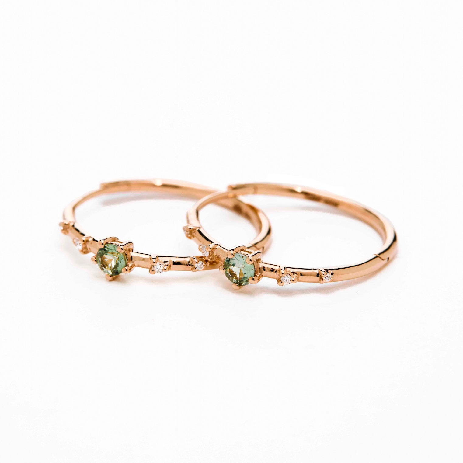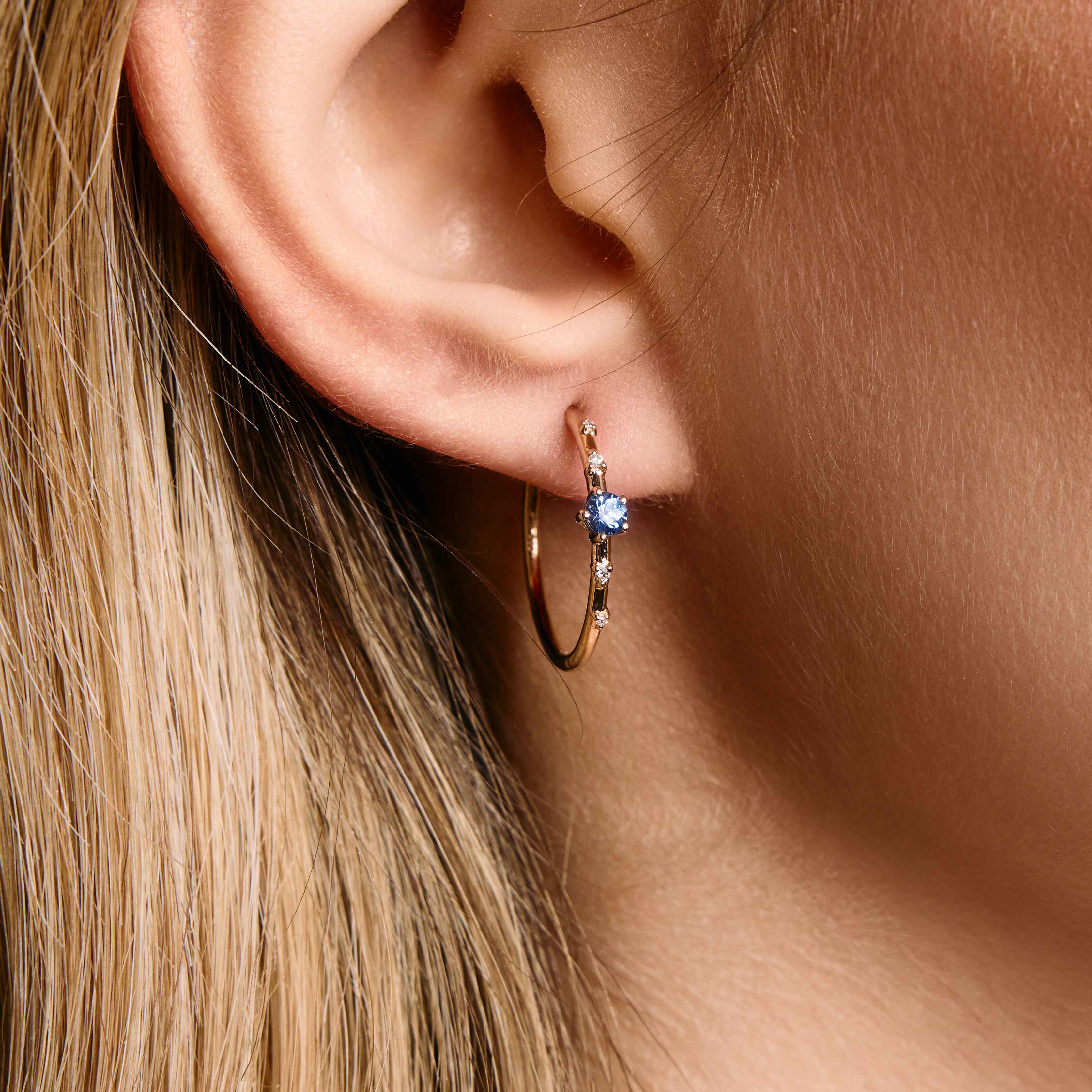 These charming hoops, measuring 17mm in size, are a delightful addition to your jewelry collection. The enchanting green, blue, or pink sapphire stones adorned with shimmering diamonds evoke the beauty of a clear night sky filled with twinkling stars. Whether paired with our Starry Night ring or worn alone, these hoops offer both style and comfort that you will adore.