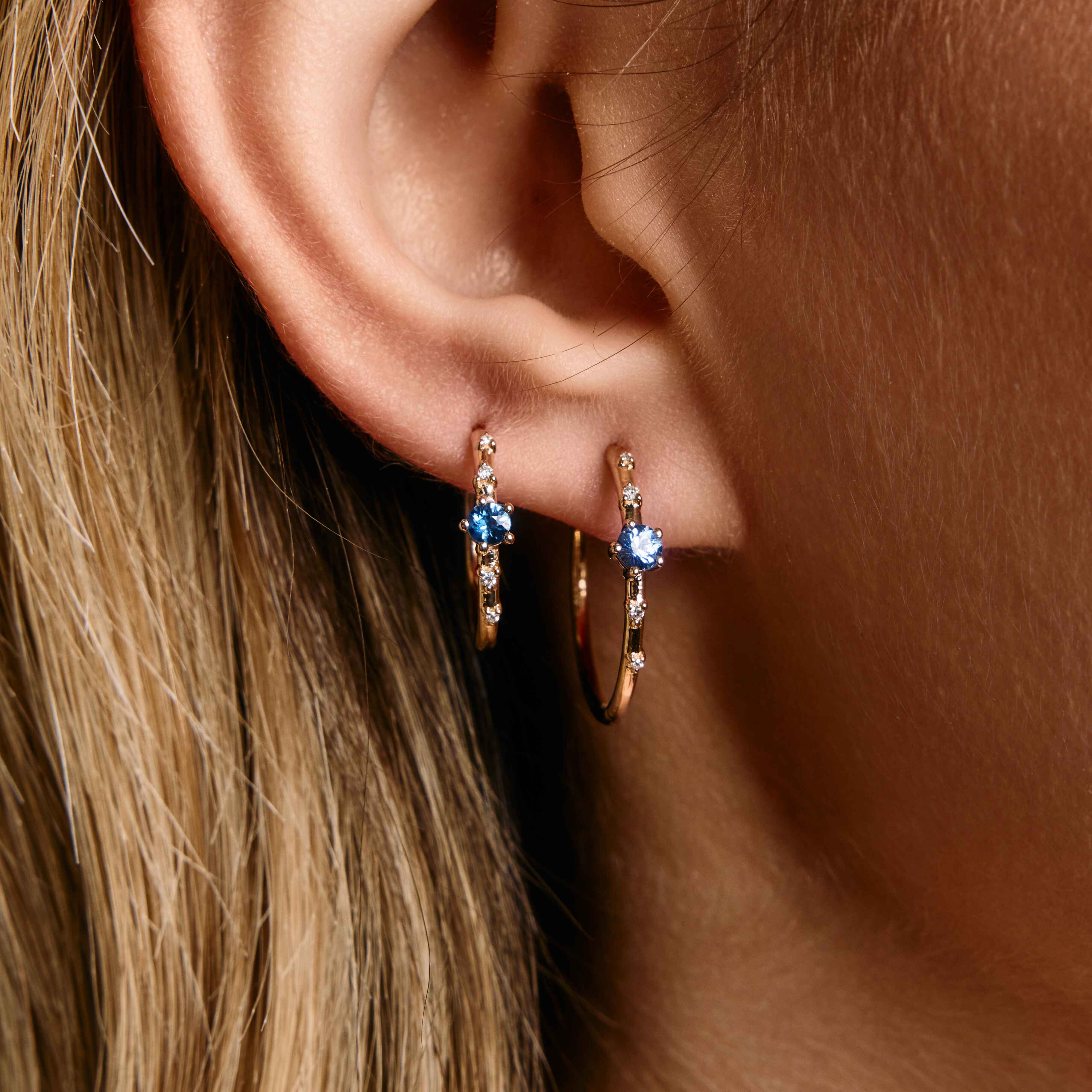 Starry Night - Diamonds and Sapphires 17 mm Hoops - Made to Order