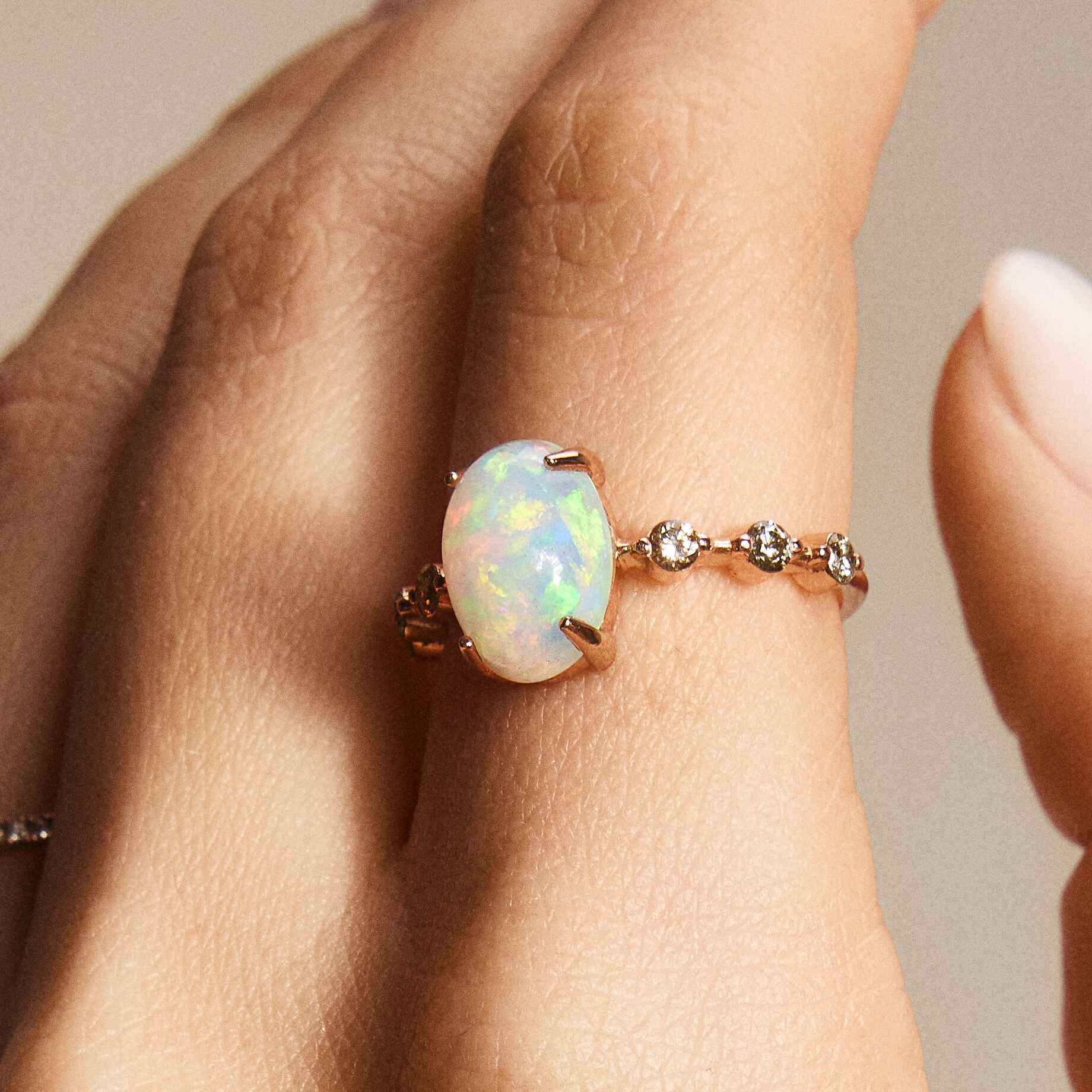 Inel cu Opal și Diamante Verzi "Fairytale" - Unicat