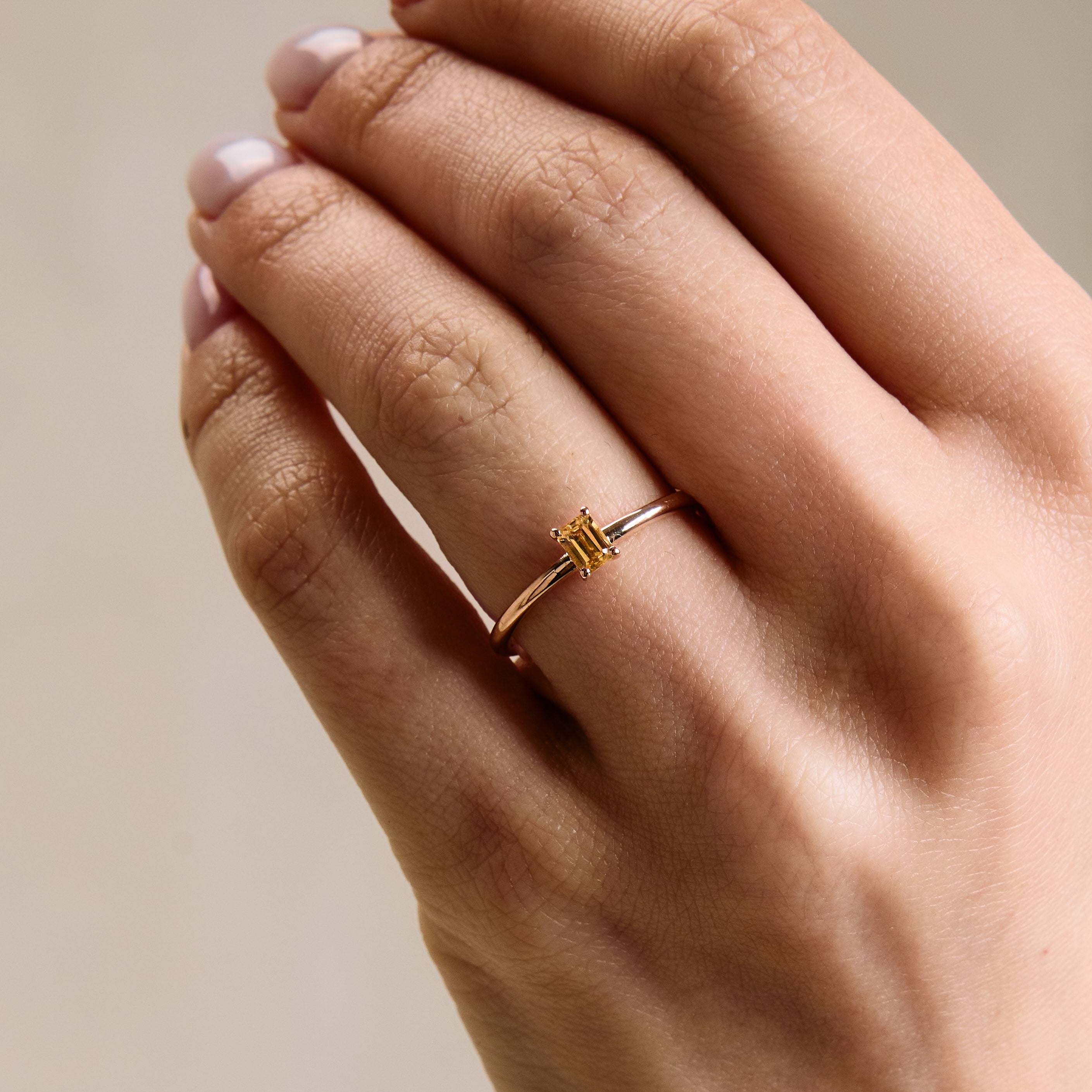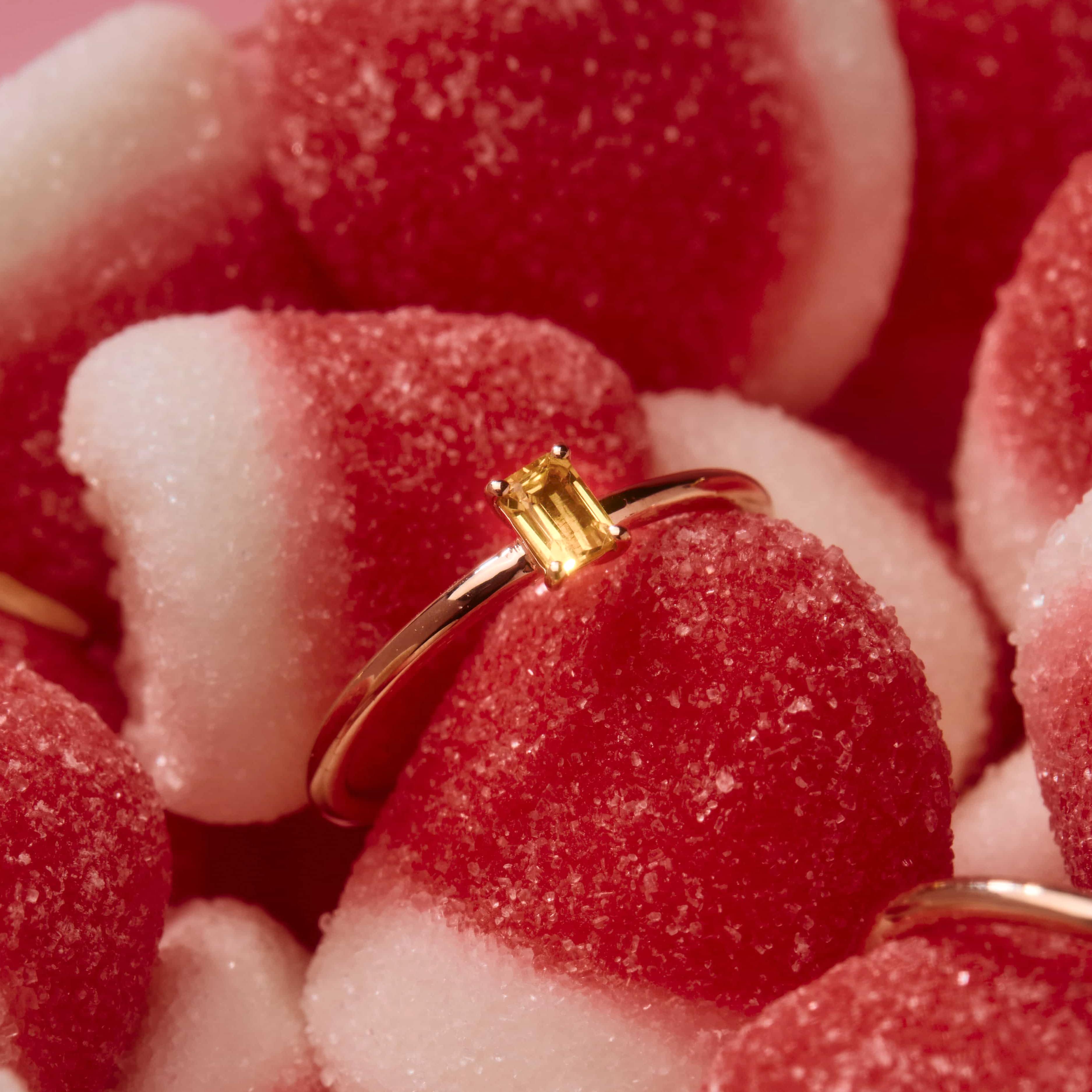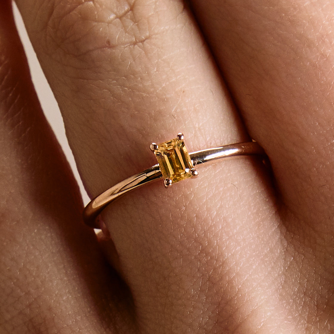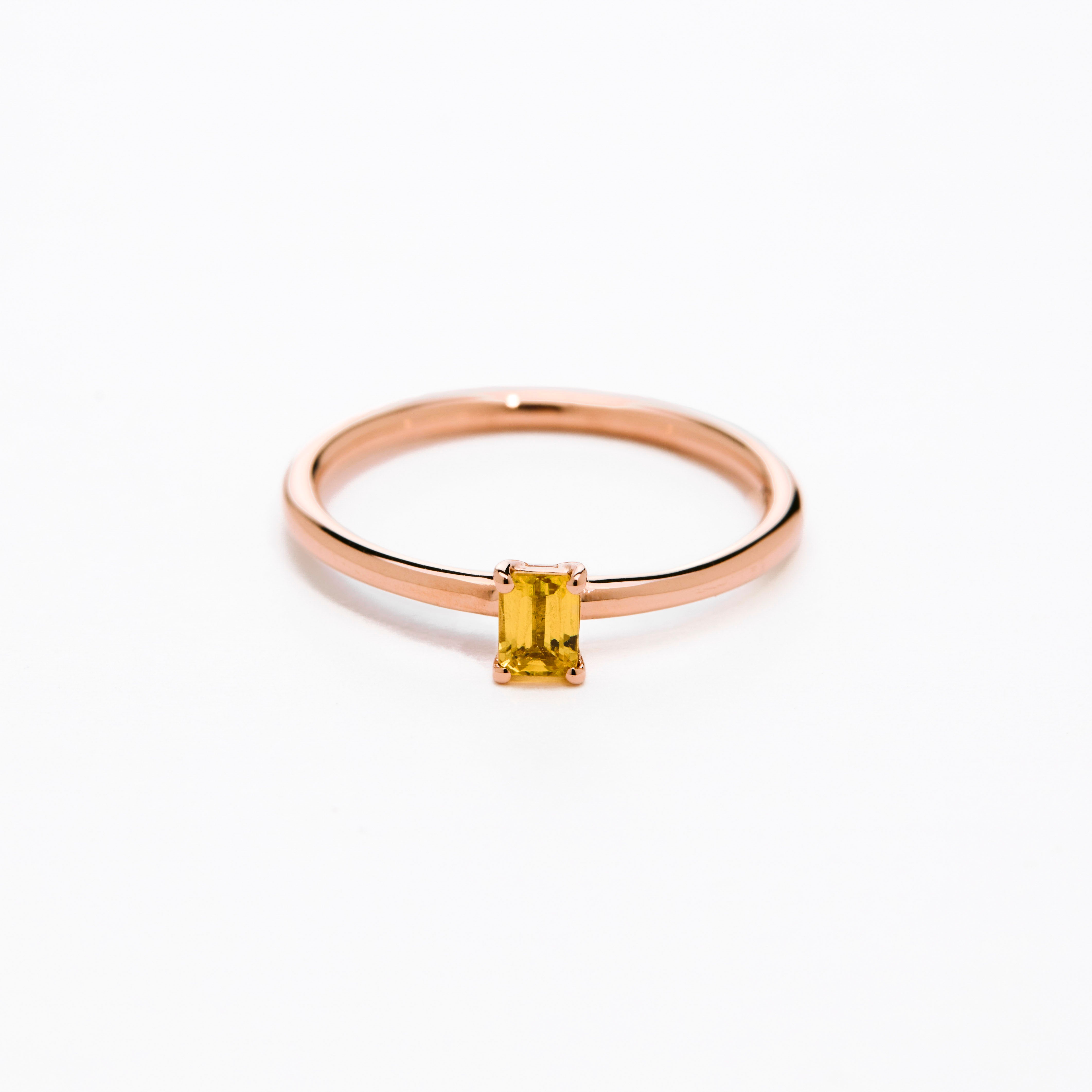 Inel Stackable Solitaire - Safir Galben Baguette